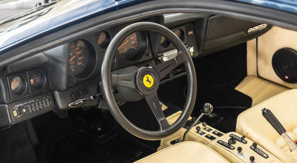 This particular example was completed on June 21st, 1983, and registered the following month. Finished in a remarkably rare Blu Sera over Crema leather, this car left for the United States in the 1980’s, appearing in New York at some point in 1987. The car returned to Europe, and was later re-exported from Germany to the USA. We purchased this car in Florida in 2021 and relocated it to our facilities in Dubai, where we took it to bare metal and repainted it from black to its original Blu Sera, along with a mechanical recommissioning including a timing belt service, gaskets, tyres, and distributor/WuR rebuilds from GTO Engineering (UK). As one of our favourite Italian cars of the eighties, this irresistible blue BBi is not to be missed by those who appreciate rare colours in flagship Ferraris.