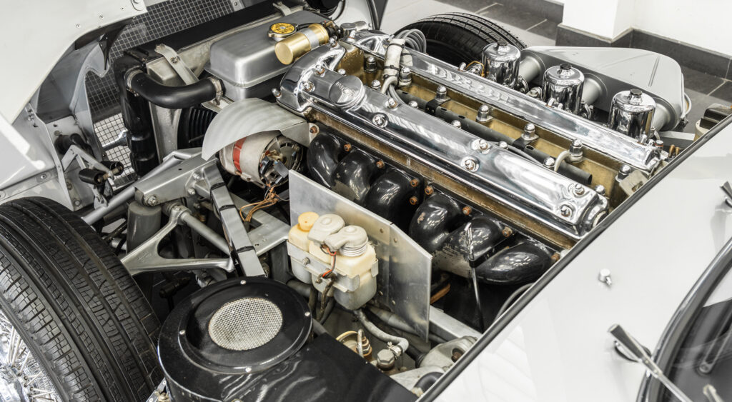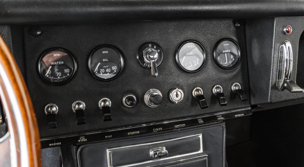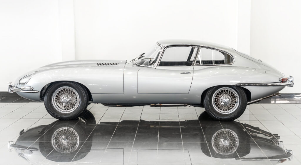 Based on the racing D-Type, the E-Type was stunningly reimagined by Malcolm Sayer with a teardrop body and the finest in racing technology: a 3.8-litre straight six, fully independent suspension, disc brakes, unitary construction for light weight. Over three “Series” the E-Type would grow to include a V12 engine and 2+2 ‘FHC Fixed Head Coupe’ but the earliest cars are the most famous and highly sought after. By any standard, all the E-types are extremely popular: 33,205 Series I cars were produced, 18,808 Series 2s and when production finally concluded in 1975, another 15,287 cars had left the Browns Lane assembly line.