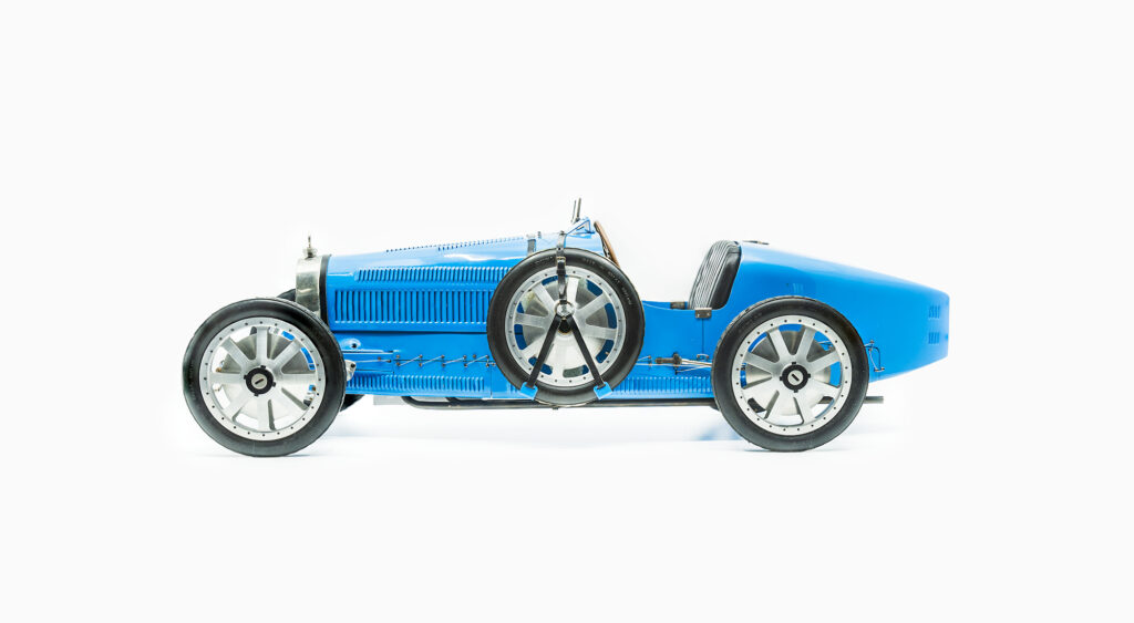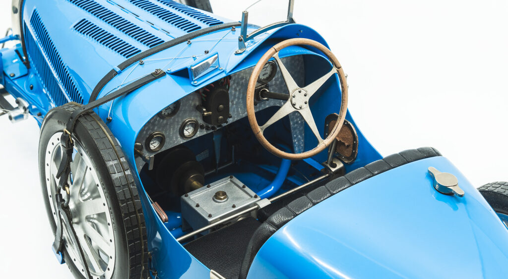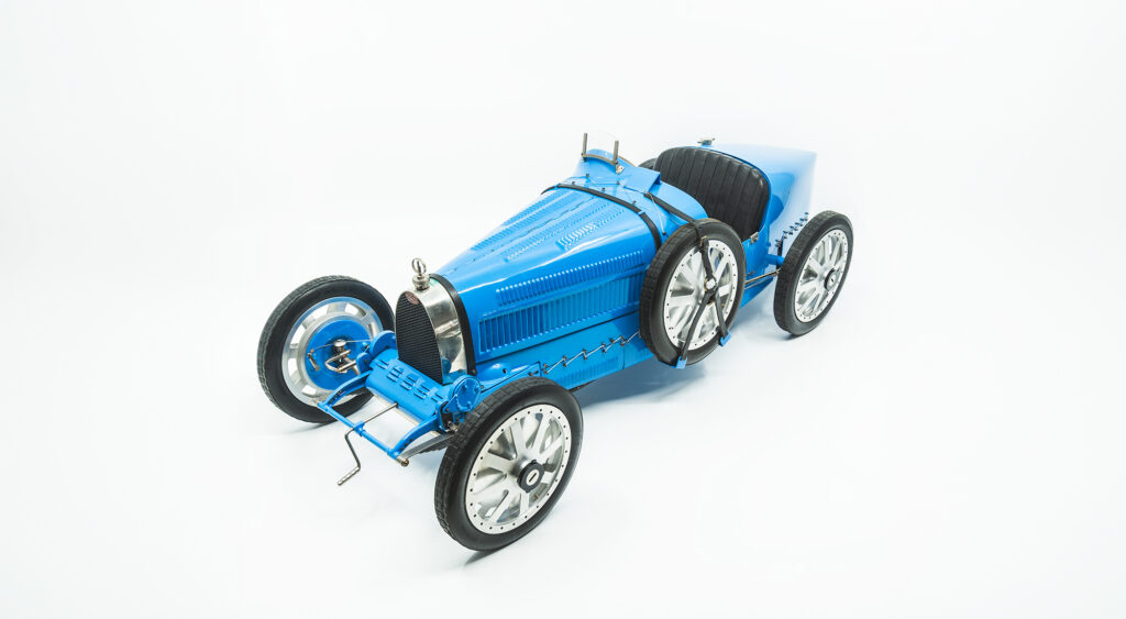 This 1:8 scale model reproduces the Type 30 in minute detail. Built out of metal, rubber and plastic by Jean-Paul Fontenelle in the 2000’s, this exquisite model comes with a plexiglass display case.