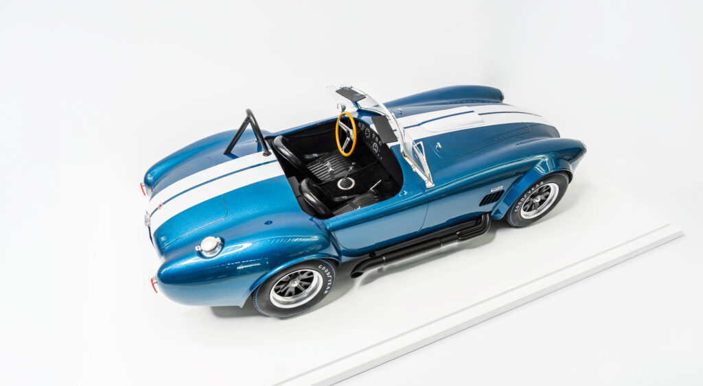 We are proud to present this stunning 1:8 scale Shelby Cobra 427 S/C, an iconic symbol of raw American performance and motorsport heritage. Every detail has been faithfully recreated, making it a true centerpiece for any serious collection.